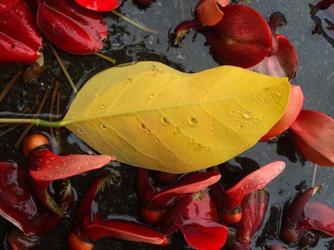 Keywords: america hashigo梧 america deigo flowers red drop of water puddle fallen leaves yellow leaf shopping centre parking lot fall flowers wind rain heisei-cho yokosuka japan