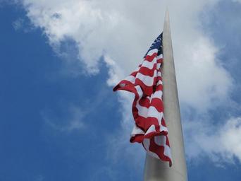 Keywords: american flag flag flying stars and stripes patriotism united states usa patriotic waving old glory breeze windy flagpole blowing national country stars and bars symbol emblem pride proud blue sky