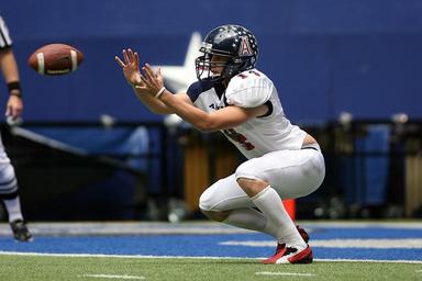 Keywords: american football kicker punter snap ball sport game team player field football athlete athletic uniform helmet competition turf football field green yard line high school astroturf play texas
