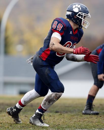 Keywords: american football player defender defensive end football helmet player athletic game competition sports youth high school team attacker action