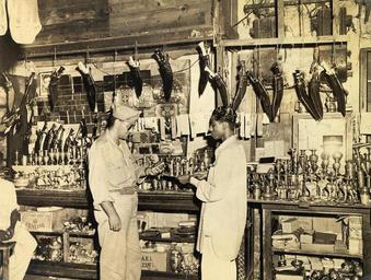 | Keywords: American GI at a shop in New Market, Calcutta in 1945.jpg Brassware and Gurkha knives are two of the most popular souvenir purchases made by soldiers Bargaining is the rule and only the sucker pays the fist price asked The New Market is alive with stalls like this The South Asia Section of the Van Pelt Library University of Pennsylvania recently acquired from a bookdealer a photograph album consisting of 60 photographs of Calcutta taken most likely between 1945-1946 The photographer Mr Clyde Waddell also provided the interesting glosses accompanying each photograph Several attested copies of this work has emerged including one with a 'title page' held by the Southeastern Louisiana University in Hammond Louisiana Mr Waddell was a military photographer Many of his captions sound like annotations that would be found in a typical military magazine The album begins with several general long shots of Calcutta and ends with a picture of dhobi-s washermen washing clothes The text accompanying the last photograph also sounds as if the author intended to finish with that picture of one of the great mysteries of India The annotations have been included because of their intrinsic interest not only to the photographs but to a 'typical' American impression of India at this time 1945 http //www library upenn edu/collections/sasia/calcutta1947/ Clyde Waddell other versions PD-USGov Van Pelt Library University of Pennsylvania - Clyde Waddell Calcutta 1940's photos Uploaded with UploadWizard Shops in Kolkata Souvenir shops in Kolkata |