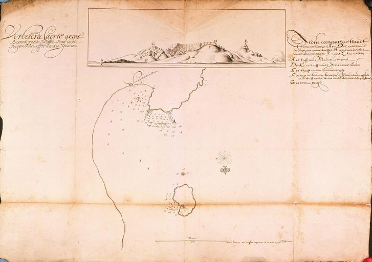 | Keywords: AMH-2500-NA Map of Table Bay.jpg Artwork nl Kaart van de Tafelbaai nl Titel in catalogus Leupe NA Verbeterde Caerte groot besteck van de Taeffel-Bay en de buyten Rhee offte ancker gronden Legenda A-G Notities verso Inzet met gezicht op de Kaapse Bergen Topografische namen vermeld op deze kaart Tafelbaai Mauritius ongeval Staart van de Leeuwenberg Leeuwen-berg Windberg en According to the Leupe NA catalogue the original title reads Verbeterde Caerte groot besteck van de Taeffel-Bay en de buyten Rhee offte ancker gronden Key A-G Notes on reverse Inzet met gezicht op de Kaapse Bergen Topographical names mentioned Tafelbaai Mauritius ongeval Staart van de Leeuwenberg Leeuwen-berg Windberg Atlas of Mutual Heritage na http //www atlasofmutualheritage nl/en/object/ id 2500 Source at the Atlas of Mutual Heritage - http //www gahetna nl/collectie/archief/inventaris/index/eadid/4 VEL/inventarisnr/177/level/file Source at the Nationaal Archief en Subjects chart / map / plan survey / view anchorage / pier / harbour nl Onderwerpen plattegrond / kaart overzicht / aanzicht rede / haven / pier en Post this image is related to a VOC trading post called http //www atlasofmutualheritage nl/en/post/ id 320 Cape Town Inscription Verbeterde Caerte groot besteck van de Taeffel-Bay en de buyten Rhee offte ancker gronden nl circa 1661 Creator Pieter Potter nl Pieter Potter toegeschreven aan landmeter/kaartenmaker en Pieter Potter assigned to land surveyor / mapmaker Institution Nationaal Archief nl pen op papier en pen on paper Size mm 520 725 accession number NL-HaNA_4 VEL_177 old number VEL0177 PD-Art-100 Maps of the Dutch East India Company - South Africa 1661 |