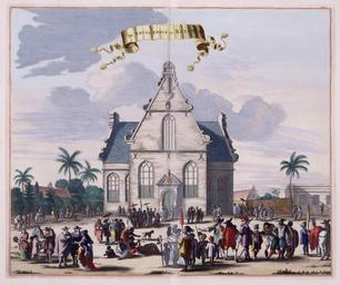| Keywords: AMH-4802-KB The Dutch church or 'Kruiskerk' at Batavia.jpg Artwork nl De Hollandse kerk of 'Kruiskerk' te Batavia nl De Hollandse kerk of 'Kruiskerk' te Batavia Op het plein voor de kerk een menigte Rechtsboven 200 Cf Westfries Museum inv nr 15241 08 De prenten uit de Atlas Van Stolk en Koninklijke Bibliotheek Den Haag inv nr 388 A 9 deel II na p 200 1 zijn zwart-wit de prent uit de Koninklijke Bibliotheek Atlas van der Hagen Koninklijke Bibliotheek Den Haag Deel 4 is ingekleurd en The Dutch church or 'Kruiskerk' at Batavia A crowd of people is depicted on the square before the church Top right 200 Cf Westfries Museum inv nr 15241 08 The prints in the Atlas Van Stolk and Koninklijke Bibliotheek Den Haag inv nr 388 A 9 part II after p 200 are in black and white while the print from the Koninklijke Bibliotheek Atlas van der Hagen Koninklijke Bibliotheek The Hague Part 4 has been coloured in Atlas of Mutual Heritage kb http //www atlasofmutualheritage nl/en/object/ id 4802 Source at the Atlas of Mutual Heritage en Subjects Person Asians Africans European fauna banderole / cartouche / ornamentation church / parsonage survey / view building nl Onderwerpen Persoon Aziaten Afrikanen Europeanen fauna banderol / cartouche / versiering kerk / pastorie overzicht / aanzicht gebouw en Post this image is related to a VOC trading post called http //www atlasofmutualheritage nl/en/post/ id 328 Jakarta Inscription De Kruyskerck op Batavia nl 1682 Creator Weduwe van Jacob van Meurs nl Weduwe van Jacob van Meurs uitgever en Weduwe van Jacob van Meurs publisher Institution Koninklijke Bibliotheek nl koperdruk op papier en copperplate printing on paper Size cm 30 3 36 5 accession number 1049B13_023 PD-Art-100 Dutch East India Company 1682 |