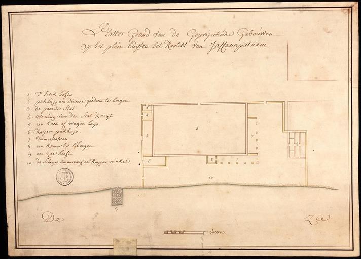 | Keywords: AMH-5376-NA Floor plan of several buildings in Jaffnapatnam.jpg Artwork nl Plattegrond van enkele gebouwen te Jaffnapatnam nl Titel catalogus Leupe NA Platte grond van de geprojecteerde gebouwen op het plein buyten het kasteel van Jaffanapatnam Notities verso No 3 Plattegrond van de geprojecteerde gebouwen bij het kasteel van Jaffanapatnam Register 5 Deel 1 Folio 25 Portefeuille en Title in the Leupe catalogue National Archives Platte grond van de geprojecteerde gebouwen op het plein buyten het kasteel van Jaffanapatnam Notes on reverse No 3 Plattegrond van de geprojecteerde gebouwen bij het kasteel van Jaffanapatnam Register 5 Deel 1 Folio 25 Portefeuille Atlas of Mutual Heritage na http //www atlasofmutualheritage nl/en/object/ id 5376 Source at the Atlas of Mutual Heritage - http //www gahetna nl/collectie/archief/inventaris/index/eadid/4 VEL/inventarisnr/1004/level/file Source at the Nationaal Archief en Subjects key fortification chart / map / plan nl Onderwerpen legenda vesting plattegrond / kaart en Post this image is related to a VOC trading post called http //www atlasofmutualheritage nl/en/post/ id 327 Jaffna Inscription Platte grond van de geprojecteerde Gebouwen op het plein buyten het kasteel van Jaffanapatnam nl between 1675 1775 nl Anoniem / Anonymous landmeter / kaartenmaker en Anoniem / Anonymous land surveyor / mapmaker Institution Nationaal Archief nl pen op papier en pen on paper Size cm 34 5 47 5 accession number NL-HaNA_4 VEL_1004 old number VEL1004 PD-Art-100 Maps of the Dutch East India Company - Sri Lanka |