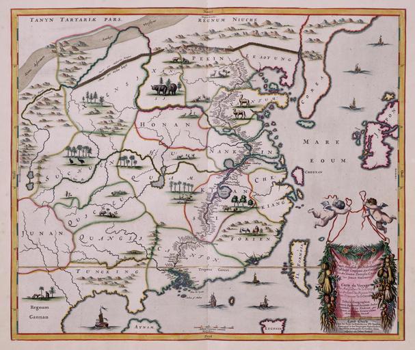 | Keywords: AMH-5649-KB Map depicting the journey by Joan Nieuhoff from Canton to Peking.jpg Artwork nl Kaart van de reis van Joan Nieuhoff van Canton naar Peking nl Kaart van de reis van Joan Nieuhoff van Canton naar Peking uit de Atlas van der Hagen Koninklijke Bibliotheek Den Haag Deel 4 Tussen 1655 en 1658 bezocht een handelsdelegatie van de Verenigde Oostindische Compagnie Peking met het doel om handelsrelaties aan te knopen met China Een van de deelnemers aan deze reis was de Amsterdamse wereldreiziger Johan Nieuhoff Na terugkomst publiceerde zijn belevenissen in een rijk geïllustreerd reisverslag Bij dat boek behoorde ook deze kaart waarop de reisroute van het gezantschap door China is afgebeeld en Map of the journey of Joan Nieuhoff from Canton to Peking taken from the Atlas van der Hagen Koninklijke Bibliotheek The Hague Part 4 A trade delegation from the Dutch East India Company visited Peking between 1655 and 1658 with the aim of establishing trade relations with China Among the delegation was the Amsterdam-based globetrotter Johan Nieuhoff On his return he published his experiences in the form of a richly illustrated travel journal This map depicting the route taken by the trade delegation on its travels through China was also included in the journal Atlas of Mutual Heritage kb http //www atlasofmutualheritage nl/en/object/ id 5649 Source at the Atlas of Mutual Heritage en Subjects ship / vessel chart / map / plan banderole / cartouche / ornamentation fauna Person nl Onderwerpen schip / vaartuig plattegrond / kaart banderol / cartouche / versiering fauna Persoon en Post this image is related to a VOC trading post called http //www atlasofmutualheritage nl/en/post/ id 372 Kanton/Guangzhou Inscription REYS-KAERTE vande Ambassade der Nederlantse Oost Indise Compagnie door China aen den Grooten Tartersen CHAM nl 1665 Creator Jacob van Meurs nl Jacob van Meurs uitgever en Jacob van Meurs publisher Institution Koninklijke Bibliotheek nl koperdruk op papier en copperplate printing on paper Size cm 44 52 accession number 1049B13_053 PD-Art-100 Maps of the Dutch East India Company - China 1665 |