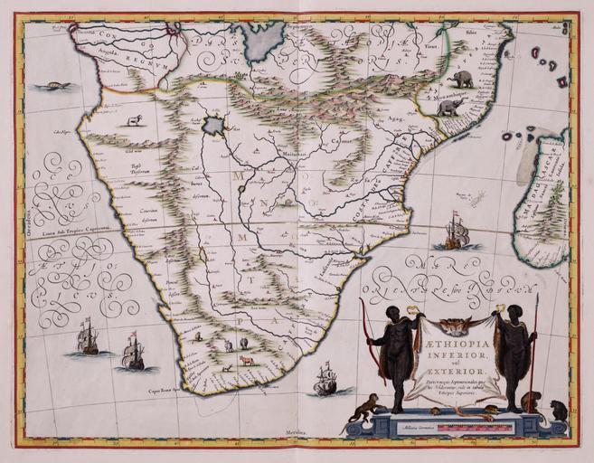 Keywords: AMH-5653-KB Map of the southern part of the African continent.jpg Artwork nl Kaart van het zuidelijk deel van het continent Afrika nl Kaart van het zuidelijk deel van het continent Afrika uit de Atlas van der Hagen Koninklijke Bibliotheek Den Haag Deel 4 Deze kaart van Willem Jansz Blaeu 1571-1638 gold in de 17de eeuw als het model waarnaar vele kaarten van Zuid-Afrika werden gekopieerd De kaart is voor een deel gebaseerd op de kaart het Koninkrijk van Prester John van Abraham Ortelius 1527-1598 uit 1573 Volgens oude legenden bevond zich ergens in het onbekende binnenlanden van Afrika een christelijk koninkrijk De oostkust van Afrika is vrij nauwkeurig weergegeven waarbij Blaeu vermoedelijk gebruik maakte van Portugese bronnen De twee grote meren iets onder de evenaar heeft Blaeu ontleend aan beschrijvingen van de geograaf Ptolemaeus uit de 2e eeuw na Christus Ze werden beschouwd als de bronnen van de Nijl s recorded by the geographer Ptolemaeus in the second century AD These lakes were deemed to be the sources of the Nile Atlas of Mutual Heritage kb http //www atlasofmutualheritage nl/en/object/ id 5653 Source at the Atlas of Mutual Heritage en Subjects chart / map / plan ship / vessel Asians Africans banderole / cartouche / ornamentation fauna Person nl Onderwerpen plattegrond / kaart schip / vaartuig Aziaten Afrikanen banderol / cartouche / versiering fauna Persoon Inscription AETHIOPIA INFERIOR vel EXTERIOR Partes magis Septentrionalis quae hic desiderantur vide in tabula Ethiopiae Superioris nl 1635 Creator Wilhelm Jansz Blaeu Creator Abraham Ortelius nl Wilhelm Jansz Blaeu uitgever Abraham Ortelius gewerkt naar en Wilhelm Jansz Blaeu publisher Abraham Ortelius copied after Institution Koninklijke Bibliotheek nl koperdruk op papier en copperplate printing on paper Size cm 38 50 accession number 1049B13_066 PD-Art-100 Old maps of the Dutch East India Company - Africa Maps of the Dutch East India Company - Madagascar Maps of the Dutch East India Company - South Africa Maps of the Dutch East India Company - Mozambique 1635 |