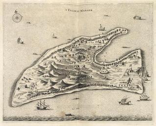 | Keywords: AMH-6971-KB Bird's eye view of the island of Manaar.jpg Artwork nl Vogelvlucht van het eiland Manaar nl Vogelvlucht van het eiland Manaar t Eylandt Manaer Rechts ligt het fort en Bird's eye view of the island of Manaar -t Eylandt Manaer On the right the fort is depicted Atlas of Mutual Heritage kb http //www atlasofmutualheritage nl/en/object/ id 6971 Source at the Atlas of Mutual Heritage en Subjects house compass / dial bird's-eye view / elevation elevation / bird's-eye view chart / map / plan pagoda / temple fortification church / parsonage ship / vessel flora building nl Onderwerpen huis / woonhuis kompas / windroos vogelvlucht / opstand opstand / vogelvlucht plattegrond / kaart pagode / tempel vesting kerk / pastorie schip / vaartuig flora gebouw en Post this image is related to a VOC trading post called http //www atlasofmutualheritage nl/en/post/ id 405 Mannar Inscription 't Eylandt Manaer nl circa 1672 Creator Johannes Janssonius Waasbergen nl Anoniem / Anonymous landmeter / kaartenmaker Johannes Janssonius Waasbergen uitgever en Anoniem / Anonymous land surveyor / mapmaker Johannes Janssonius Waasbergen publisher Institution Koninklijke Bibliotheek nl koperdruk op papier en copperplate printing on paper Size cm 29 5 36 5 accession number 189 A 6 deel II na p 150 PD-Art-100 Maps of the Dutch East India Company - Sri Lanka 1672 Mannar |