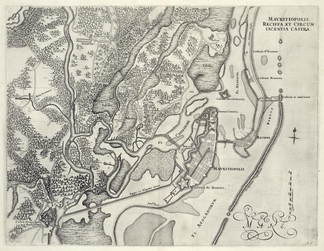 | Keywords: AMH-7317-KB Map of Mauritsstad, Recife and environs.jpg Artwork nl Plattegrond van Mauritsstad Recife en omgeving nl Plattegrond van Mauritsstad Recife en omgeving Mauritiopolis Reciffa et Circumiacentia Castra Rechtsonder no 40 en Map of Mauritsstad Recife and environs Mauritiopolis Reciffa et Circumiacentia Castra Bottom right no 40 Atlas of Mutual Heritage kb http //www atlasofmutualheritage nl/en/object/ id 7317 Source at the Atlas of Mutual Heritage en Subjects chart / map / plan fortification compass / dial building anchorage / pier / harbour garden / ornamental garden bridge nl Onderwerpen plattegrond / kaart vesting kompas / windroos gebouw rede / haven / pier tuin / siertuin brug en Post this image is related to a WIC trading post called http //www atlasofmutualheritage nl/en/post/ id 1040 Boavista Inscription Mauritiopolis Reciffa et Circumiacentia Castra nl 1647 Creator Georg Marcgraf Creator Joan Blaeu sr Creator Frans Post nl Georg Marcgraf toegeschreven aan landmeter/kaartenmaker Joan Blaeu sr uitgever Frans Post toegeschreven aan landmeter/kaartenmaker en Georg Marcgraf assigned to land surveyor / mapmaker Joan Blaeu sr publisher Frans Post assigned to land surveyor / mapmaker Institution Koninklijke Bibliotheek nl koperdruk op papier en copperplate printing on paper Size cm 41 53 accession number 1043 B 14 na p 146 no 40 PD-Art-100 Maps of the West-Indische Compagnie 1647 |