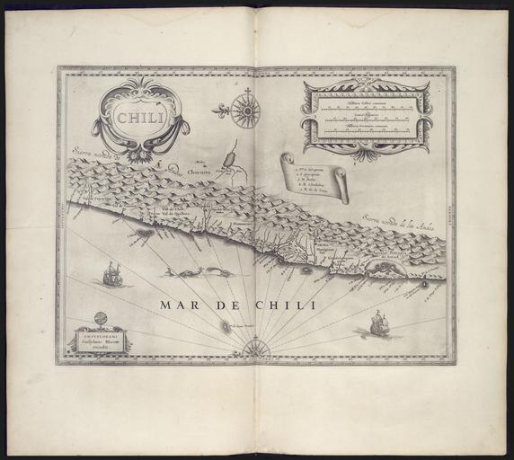 Keywords: AMH-7511-KB Map of Chile.jpg Artwork nl Kaart van Chili nl Kaart van Chili Chili Legenda 1 Pta de Talcaguana / 2 I Quiriquina / 3 R Biobio / 4 R Llandalien / 5 R de la Laxa Cf Koninklijke Bibliotheek Den Haag inv nr 1049B13_089 Idem inv nr 40 E 6 na p 410; en Idem inv nr 36 G 19 na p 424 en Map of Chile Chili Key 1 Pta de Talcaguana / 2 I Quiriquina / 3 R Biobio / 4 R Llandalien / 5 R de la Laxa Cf Koninklijke Bibliotheek The Hague inv nr 1049B13_089 Idem inv nr 40 E 6 after p 410; and Idem inv nr 36 G 19 after p 424 Atlas of Mutual Heritage kb http //www atlasofmutualheritage nl/en/object/ id 7511 Source at the Atlas of Mutual Heritage en Subjects key chart / map / plan banderole / cartouche / ornamentation fauna compass / dial ship / vessel nl Onderwerpen legenda plattegrond / kaart banderol / cartouche / versiering fauna kompas / windroos schip / vaartuig en Post this image is related to a WIC trading post called http //www atlasofmutualheritage nl/en/post/ id 1056 Castro Inscription Chili author Amstelodami Guiljelmus Blaeuw excudit nl 1647 Creator Wilhelm Jansz Blaeu Creator Joan Blaeu sr nl Wilhelm Jansz Blaeu uitgever Joan Blaeu sr uitgever Anoniem / Anonymous landmeter / kaartenmaker en Wilhelm Jansz Blaeu publisher Joan Blaeu sr publisher Anoniem / Anonymous land surveyor / mapmaker Institution Koninklijke Bibliotheek nl koperdruk op papier en copperplate printing on paper Size cm 45 5 51 accession number 1043 B 14 na p 262 PD-Art-100 Maps of the West-Indische Compagnie 1647