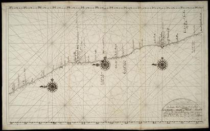 | Keywords: AMH-7665-NA Map of the Namibian coast.jpg Artwork nl Kaart van de Namibische kust nl Kaart van de Namibische kust Titel catalogus Leupe NA Seekaerten van de Kafferse en Angolse Kusten Seekaerten van de Cafferse En AanGolsche Kusten De kompaslijnen zijn gedrukt De kaart is op blauw papier geplakt Notities verso Andries Graan Op verschillende plekken op de kaart 153 in potlood Rechtsonder No 11 Op de cartouche zijn versieringen in potlood geschetst maar niet afgemaakt met inkt en Map of the Namibian coast Title in the Leupe catalogue NA Seekaerten van de Kafferse en Angolse Kusten Seekaerten van de Cafferse En AanGolsche Kusten The compass lines have been printed -The chart has been pasted onto blue paper Notes on the reverse Andries Graan Marked in various places on the chart in pencil 153 Bottom right No 11 On the cartouche the decorations have been sketched in pencil but not yet completed in ink Atlas of Mutual Heritage na http //www atlasofmutualheritage nl/en/object/ id 7665 Source at the Atlas of Mutual Heritage - http //www gahetna nl/collectie/archief/inventaris/index/eadid/4 VEL/inventarisnr/153/level/file Source at the Nationaal Archief en Subjects chart / map / plan compass / dial banderole / cartouche / ornamentation nl Onderwerpen plattegrond / kaart kompas / windroos banderol / cartouche / versiering Inscription Seekaerten van de Cafferse En AanGolsche Kusten author Aldus Geopsarveert Int' Jaar 1723 op t' Edl Westindise / Comp Skip Waartwijk Ende Nouw keurrig In Order / Gesteelt tot dienste van Van mijn Stuurman A Graan nl 1723 Creator Andries Graan nl Andries Graan landmeter / kaartenmaker en Andries Graan land surveyor / mapmaker Institution Nationaal Archief nl pen op papier en pen on paper Size cm 63 5 103 accession number NL-HaNA_4 VEL_153 old number VEL0153 PD-Art-100 1723 |