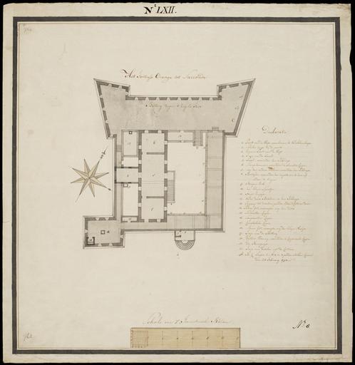 | Keywords: AMH-7695-NA Floor plan of the Oranje fort at Sekondi.jpg Artwork nl Plattegrond van het fort Oranje te Sekondi nl Plattegrond van het fort Oranje te Sekondi Titel catalogus Leupe NA Het Fortress Orange tot Sacconde Het Fortress Orange tot Sacconde Notities verso No 22 reg 8 / 459 met vette cijfers gestempeld op een etiketje Legenda nummers 1 tot en met 22 en A tot en met C Rechtsonder No 8 Middenboven No LXII Linksboven en linksonder 762 in potlood en Floor plan of the Oranje fort at Sekondi Title in the Leupe catalogue NA Het Fortress Orange tot Sacconde Het Fortress Orange tot Sacconde Notes on reverse No 22 reg 8 / 459 stamped in bold figures on a small label Key numbers 1 through 22 and A through C Bottom right No 8 Top centre No LXII Top left and bottom left 762 in pencil Atlas of Mutual Heritage na http //www atlasofmutualheritage nl/en/object/ id 7695 Source at the Atlas of Mutual Heritage - http //www gahetna nl/collectie/archief/inventaris/index/eadid/4 VEL/inventarisnr/762/level/file Source at the Nationaal Archief en Subjects chart / map / plan compass / dial key fortification building nl Onderwerpen plattegrond / kaart kompas / windroos legenda vesting gebouw en Post this image is related to a WIC trading post called http //www atlasofmutualheritage nl/en/post/ id 694 Sekondi Inscription Het Fortress Orange tot Sacconde nl 1791 nl Anoniem / Anonymous landmeter / kaartenmaker en Anoniem / Anonymous land surveyor / mapmaker Institution Nationaal Archief nl pen en penseel op papier en pen and brush on paper Size cm 48 5 47 accession number NL-HaNA_4 VEL_762 old number VEL0762 PD-Art-100 Maps of the West-Indische Compagnie 1791 |