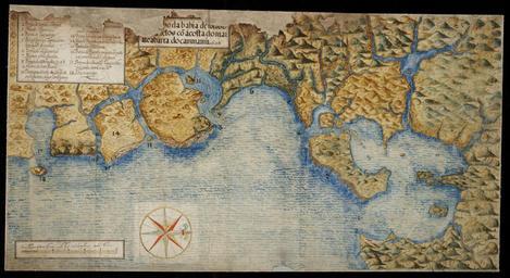 | Keywords: AMH-8589-NA Portuguese chart of Allerheiligenbaai in Brazil.jpg Artwork nl Portugese kaart van de Allerheiligenbaai in Brazilië nl Portugese kaart van de Allerheiligenbaai in Brazilië Titel in Catalogus Leupe Kaart da bahia de Todos os Sanctos co á Costa do Mar ate a barra do Cammamú ho da bahia de todos os sanctos co acosta do mar ateabarra do cammamu 1638 Legenda 1-18 en Portuguese chart of Allerheiligenbaai in Brazil Title in the Leupe Catalogue Kaart da bahia de Todos os Sanctos co á Costa do Mar ate a barra do Cammamú ho da bahia de todos os sanctos co acosta do mar ateabarra do cammamu 1638 Key 1-18 Atlas of Mutual Heritage na http //www atlasofmutualheritage nl/en/object/ id 8589 Source at the Atlas of Mutual Heritage - http //www gahetna nl/collectie/archief/inventaris/index/eadid/4 VEL/inventarisnr/719/level/file Source at the Nationaal Archief en Subjects chart / map / plan compass / dial banderole / cartouche / ornamentation key building house nl Onderwerpen plattegrond / kaart kompas / windroos banderol / cartouche / versiering legenda gebouw huis / woonhuis en Post this image is related to a WIC trading post called http //www atlasofmutualheritage nl/en/post/ id 1052 Salvador Inscription ho da bahia de todos os sanctos co acosta do mar ateabarra do cammamu 1638 nl 1638 nl Anoniem / Anonymous landmeter / kaartenmaker en Anoniem / Anonymous land surveyor / mapmaker Institution Nationaal Archief nl aquarel/waterverf op papier en watercolour on paper Size cm 38 71 accession number NL-HaNA_4 VEL_719 old number VEL0719 PD-Art-100 Maps of the West-Indische Compagnie 1638 |