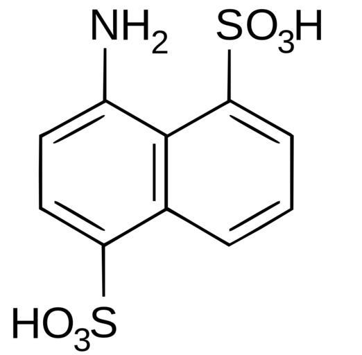 Keywords: Amino S acid.svg Skeletal formula of Amino S acid synonymous with 4-amino-1 5-naphthalenedisulfonic acid Created using ISIS/Draw and Inkscape Own Krakatit 2008-08-31 Naphthylamines Naphthalene sulfonic acids
