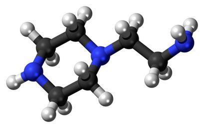 | Keywords: Aminoethylpiperazine-3D-balls.png Ball-and-stick model of the aminoethylpiperazine molecule Colour code 505050 Carbon C black<br> F0F0F0 Hydrogen H white<br> F51E1E Oxygen O red<br> 3C50FA Nitrogen N blue<br> 2011-06-09 own DS Visualizer Jynto talk Space-filling version cc-zero Piperazines Primary amines Images by Jynto Ball-and-stick models |