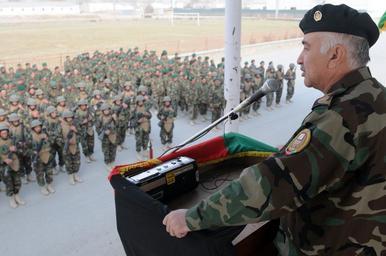 | Keywords: Aminullah Karim speaking to soldiers in 2009.jpg Afghan Lt Gen Ameenullah Karim speaks to three companies of soldiers in a parade review during a deployment ceremony held in Kabul Nov 22 2009 Gen Karim commander of the ANA education department spoke to the soldiers of their duty and commitment to their mission The Afghan National Army took another step closer to meeting their goal of a 134 000-man army by October 2010 during the ceremony before the deployment of almost 800 soldiers from accelerated companies The accelerated companies finished their training at the Kabul Military Training Center which trains soldiers under a five-week schedule U S Navy photo by Chief Mass Communication Specialist SCW F Julian Carroll 091122-N-9594C-001 Navy http //www flickr com/photos/isafmedia/4127019976/ 2009-11-22 13 19 F Julian Carroll U S armed forces PD-USGov-Military-Navy cc-by-2 0 isafmedia http //flickr com/photos/29456680 N06/4127019976 04 15 5 August 2011 UTC cc-by-2 0 Kabul Military Training Center Aminullah Karim |