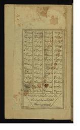 | Keywords: Amir Khusraw Dihlavi - Colophon - Walters W622274A - Full Page.jpg This folio from Walters manuscript W 622 contains a colophon islamic 1529 935 Safavid ink pigments laid paper cm 27 0 16 5 accession number W 622 274A 83670 Muhammad 'Ali Shirazi ibn Muhammad Qasim Shirazi 1250 mode of acquisition unknown Henry Walters Baltimore date and mode of acquisition unknown Walters Art Museum Henry Walters Acquired by Henry Walters Transliteration place of origin Iran Walters Art Museum license 2D Khamsa of Amir Khusraw Walters MS 622 Media contributed by the Walters Art Museum needs category review |
