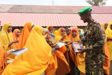 | Keywords: A Kenyan soldier serving under the African Union Mission in Somalia (AMISOM) hands over books and pens students of Ganane Primary and Secondary School in Kismayo, Somalia. AMISOM soldiers from the Kenyan contingent donated the scholastic materials to the students on January 02, 2016. AMISOM Photo/ Awil Abukar. A Kenyan soldier serving under the African Union Mission in Somalia (AMISOM) hands over books and pens students of Ganane Primary and Secondary School in Kismayo, Somalia. AMISOM soldiers from the Kenyan contingent donated the scholastic materials to the students on January 02, 2016. AMISOM Photo/ Awil Abukar. A Kenyan soldier serving under the African Union Mission in Somalia (AMISOM) hands over books and pens students of Ganane Primary and Secondary School in Kismayo, Somalia. AMISOM soldiers from the Kenyan contingent donated the scholastic materials to the students on January 02, 2016. AMISOM Photo/ Awil Abukar. AMISOM KDF Donation-4 (24042442011).jpg A Kenyan soldier serving under the African Union Mission in Somalia AMISOM hands over books and pens students of Ganane Primary and Secondary School in Kismayo Somalia AMISOM soldiers from the Kenyan contingent donated the scholastic materials to the students on January 02 2016 AMISOM Photo/ Awil Abukar <br/> Personality rights https //www flickr com/photos/au_unistphotostream/24042442011/ AMISOM_KDF_Donation-4 2016-01-02 10 24 https //www flickr com/people/61765479 N08 AMISOM Public Information cc-zero AMISOM Public Information https //flickr com/photos/61765479 N08/24042442011 2016-05-19 21 13 53 cc-zero Photographs by the African Union Mission to Somalia Uncategorized 2016 November 11 |