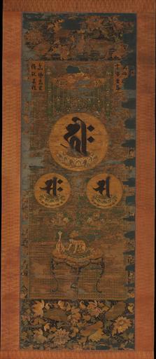 | Keywords: Amitabha Triad in the Form of Sacred Sanskrit Syllables, 13th century, silk embroidery, Metropolitan Museum of Art, 1975.268.22.jpg Amitabha Triad in the Form of Sacred Sanskrit Syllables Kamakura period 13th century Japan hanging scroll; silk embroidery gold-wrapped thread and human hair image 44 7/8 x 15 1/4 in 114 x 38 7 cm Metropolitan Museum of Art accession 1975 268 22 Metropolitan Museum of Art century 13 Creator Unknown Art of Japan in the Metropolitan Museum of Art Embroidery from Japan PD-old-100 |