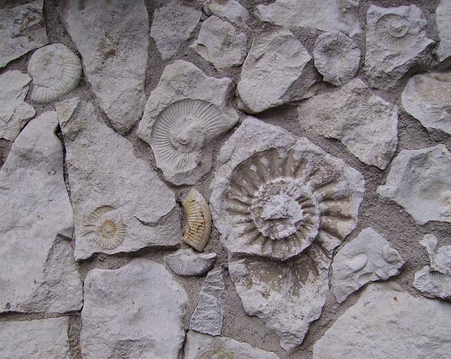 Keywords: Ammonitenmauer Laibaroes.jpg Wall in Laibarös Germany own photography by Immanuel Giel Franconian Switzerland Stone wall textures Gray textures Laibarös Unidentified Ammonoidea Fossils in walls and floors