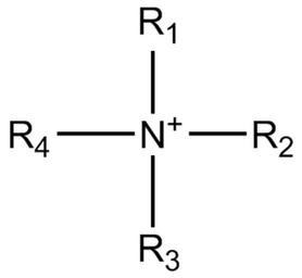 Keywords: Ammonium ion.png quaternary ammonium ion general structure own Klever 2009-05-06 Functional groups Quaternary ammonium ions