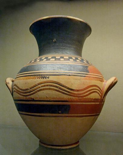 MAKE A MEME View Large Image Amphora protogeometric BM A1123.jpg Late protogeometric belly-handled amphora with chequer-board design on the shoulder and parallel wavy lines in a panel at the handle zone Made in Athens from Athens Amphore protogéométrique récente à ...