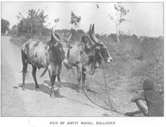 | Keywords: AmritMahal.jpg Amrit Mahal bullocks http //archive org/stream/MysoreCattle page/n8/mode/1up Kistnasamiengar A H T Pease 1912 Note on the cattle of Mysore 1895 Government Press Calcutta 1912 1912 Photographer unknown Indian government pd-old Cattle breeds originating in India Cattle on roads |