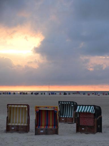 Keywords: amrum beach sea north sea island nordfriesland sky holiday kniepsand sun sunset clouds beach chair evening abendstimmung sand beach