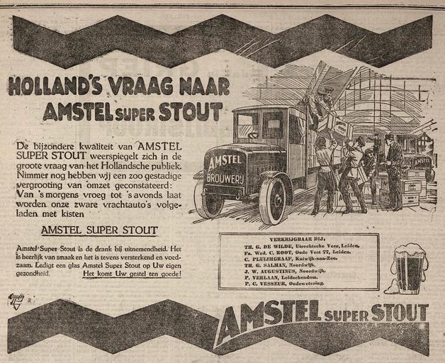Keywords: Amstel Beer advertisement 1922.jpg en A large advertisement half a page for Amstel super Stout -beer published in the Leidsch Dagblad of 23 December 1922 Leiden Netherlands nl Een advertentie van een halve pagina voor Amstel super Stout -bier uit het Leidsch Dagblad van 23 december 1922 Leidsch Dagblad a Dutch newspaper from 23 December 1922 author 1922-12-23 This advertisement is in the public domain Het auteursrecht in Nederland vervalt 70 jaar na de eerste openbaarmaking van het werk indien het gaat om een anoniem of om een onder pseudoniem verschenen werk of werk van een rechtspersoon PD-old Amstel Brewery Beer advertising Advertisements in the Netherlands 1922 advertisements