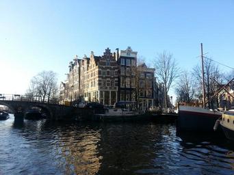 Keywords: amsterdam netherlands holland channel canal city building city view waterway water home