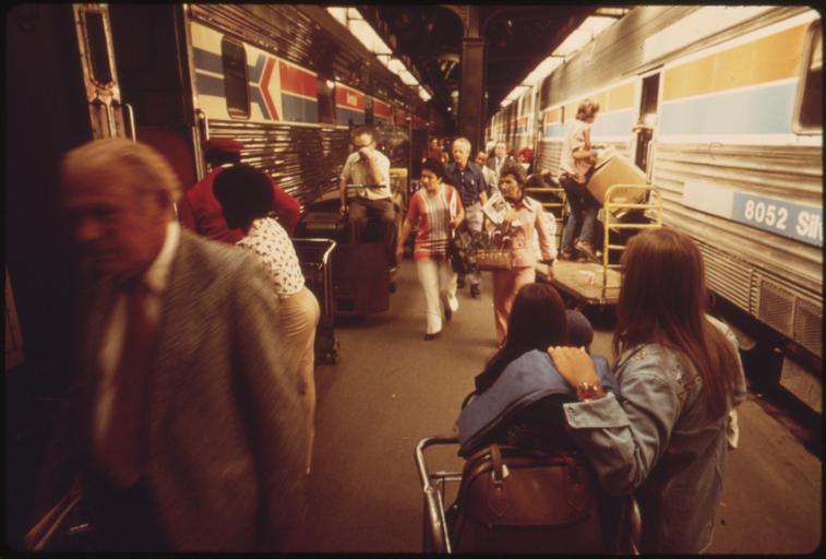 MAKE A MEME View Large Image AMTRAK RAILROAD PASSENGERS ON THEIR WAY FROM THE CHICAGO STATION TO BOARD THE BROADWAY LIMITED BOUND FOR WASHINGTON... - NARA - 556827.jpg The car at right is Amtrak 8052 Silver Restaurant a former Chicago Burlington and Quincy Railroad ...