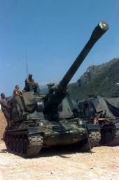 | Keywords: AMX-30 AuF1.JPEG Two French Army Giat 155mm GCT 155mm AUF1 Self-propelled Guns 40th Regiment d' Artillerie with IFOR markings are parked at Hekon Base near Mostar Bosnia-Herzegovina in support of Operation Joint Endeavor Three crewmembers are seated or standing on or around the turret of the vehicle in the foreground and one crewmember is inspecting the vehicle in the background Operation Joint Endeavor is a peacekeeping effort by a multinational Implemention force IFOR comprised of NATO and non-NATO military forces deployed to Bosnia in support of the Dayton Peace Accords Source http //www defenselink mil/ http //www dodmedia osd mil/DefenseLINK_Search/Still_Details cfm SDAN DDSD0000115 JPGPath /Assets/Still/2000/DoD/DD-SD-00-00115 JPG PD-USGov AuF1 IFOR Operation Joint Endeavor |