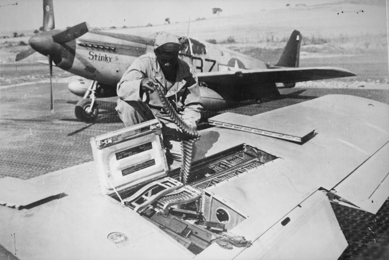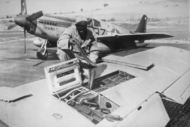 | Keywords: "An armorer of the 15th U.S. Air Force checks ammunition belts of the .50 caliber machine guns in the wings of a P-51 Mu - NARA - 535764.tif Local identifier 208-MO-18H-32984 Office for Emergency Management Office of War Information Overseas Operations Branch New York Office News and Features Bureau 12/17/1942 - 09/15/1945 Still Picture Records Section Special Media Archives Services Division NWCS-S National Archives at College Park 8601 Adelphi Road College Park MD 20740-6001 ca 09/1944 Record group Record Group 208 Records of the Office of War Information 1926 - 1951 Record group ARC 535 Photographs of American Military Operations compiled 1942 - 1945 Series ARC 535762 Variant control numbers NAIL Control Number NWDNS-208-MO-18H-32984<br /> Select List Identifier AFRO/AM LIST 55 General notes Scope and content File unit File unit ARC yes NARA-cooperation PD-USGov P-51C Mustang Tuskegee Airmen Browning AN/M2 NARA TIF images with categorized JPGs 332d Fighter Group United States Army Air Forces |
