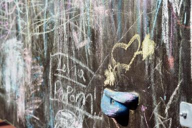 Keywords: an array of graffiti heart drawing wall climbing painting chalk playground