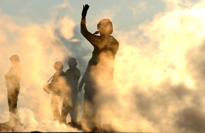 | Keywords: US Navy 030929-N-0696M-203 An Aviation Boatswain^rsquo,s Mate signals for another aircraft to taxi into position, as he is surrounded by the steam from one of four catapults on the flight deck aboard USS Ronald Reagan (CVN 76).jpg en Aboard USS Ronald Reagan CVN 76 Sept 29 2003 -- An Aviation Boatswain s Mate signals for another aircraft to taxi into position as he is surrounded by the steam from one of four catapults on the flight deck aboard USS Ronald Reagan CVN 76 The nuclear-powered aircraft carrier is underway in the Atlantic Ocean to provide a carrier qualification platform for Carrier Air Wing Seventeen CVW-17 U S Navy photo by Photographer s Mate 2nd Class Chad McNeeley RELEASED 2003-09-29 030929-N-0696M-203 Navy http //www navy mil/view_image asp id 10192 U S Navy photo by Photographer s Mate 2nd Class Chad McNeeley PD-USGov-Military-Navy Aircraft taxiing on USS Ronald Reagan CVN-76 |
