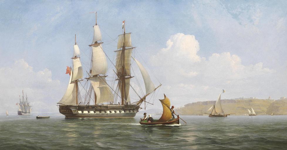 | Keywords: An English frigate hove-to off the southern bank of the Tagus - Guiseppe Schranz (attrib.).png en An English frigate hove-to off the southern bank of the Tagus 19th century oil on canvas by Joseph Giuseppe Schranz en 'Uma fragata inglesa pondo ao través junto da margem sul do Tejo óleo sobre tela século XIX por José Giuseppe Schranz century 19 http //www bonhams com/auctions/20485/lot/31/ Bonhams Giuseppe Schranz other versions Custom license marker 2016 12 17 PD-old-100 19th-century paintings of ships Tagus River in Almada |