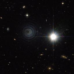 | Keywords: iras 23166+1655 iras231661655 ll pegasi llpegasi outdoor black background This remarkable picture from the Advanced Camera for Surveys on the NASA/ESA Hubble Space Telescope shows one of the most perfect geometrical forms created in space. It captures the formation of an unusual pre-planetary nebula, known as IRAS 23166+1655, around the star LL Pegasi (also known as AFGL 3068) in the constellation of Pegasus (the Winged Horse). The striking picture shows what appears to be a thin spiral pattern of astonishingly regularity winding around the star, which is itself hidden behind thick dust. The spiral pattern suggests a regular periodic origin for the nebula’s shape. The material forming the spiral is moving outwards a speed of about 50 000 km/hour and, by combining this speed with the distance between layers, astronomers calculate that the shells are each separated by about 800 years.The spiral is thought to arise because LL Pegasi is a binary system, with the star that is losing material and a companion star orbiting each other. The spacing between layers in the spiral is expected to directly reflect the orbital period of the binary, which is indeed estimated to be also about 800 years.The creation and shaping of planetary nebulae is an exciting area of stellar evolution. Stars with masses from about half that of the Sun up to about eight times that of the Sun do not explode as supernovae at the ends of their lives. Instead a more regal end awaits them as their outer layers of gas are shed and drift into space, creating striking and intricate structures that to Earth-bound observers often look like dramatic watercolour paintings. IRAS 23166+1655 is just starting this process and the central star has yet to emerge from the cocoon of enveloping dust.This picture was created from images from the Wide Field Channel of the Advanced Camera for Surveys on Hubble. Images through a yellow filter (F606W, coloured blue) were combined with images through a near-infra red filter (F804W, coloured red). The exposure times were 11 minutes and 22 minutes respectively and the field of view spans about 80 arcseconds.Links Paper discussing the intriguing AFGL 3068 (PDF format) This remarkable picture from the Advanced Camera for Surveys on the NASA/ESA Hubble Space Telescope shows one of the most perfect geometrical forms created in space. It captures the formation of an unusual pre-planetary nebula, known as IRAS 23166+1655, around the star LL Pegasi (also known as AFGL 3068) in the constellation of Pegasus (the Winged Horse). The striking picture shows what appears to be a thin spiral pattern of astonishingly regularity winding around the star, which is itself hidden behind thick dust. The spiral pattern suggests a regular periodic origin for the nebula’s shape. The material forming the spiral is moving outwards a speed of about 50 000 km/hour and, by combining this speed with the distance between layers, astronomers calculate that the shells are each separated by about 800 years.The spiral is thought to arise because LL Pegasi is a binary system, with the star that is losing material and a companion star orbiting each other. The spacing between layers in the spiral is expected to directly reflect the orbital period of the binary, which is indeed estimated to be also about 800 years.The creation and shaping of planetary nebulae is an exciting area of stellar evolution. Stars with masses from about half that of the Sun up to about eight times that of the Sun do not explode as supernovae at the ends of their lives. Instead a more regal end awaits them as their outer layers of gas are shed and drift into space, creating striking and intricate structures that to Earth-bound observers often look like dramatic watercolour paintings. IRAS 23166+1655 is just starting this process and the central star has yet to emerge from the cocoon of enveloping dust.This picture was created from images from the Wide Field Channel of the Advanced Camera for Surveys on Hubble. Images through a yellow filter (F606W, coloured blue) were combined with images through a near-infra red filter (F804W, coloured red). The exposure times were 11 minutes and 22 minutes respectively and the field of view spans about 80 arcseconds.Links Paper discussing the intriguing AFGL 3068 (PDF format) |