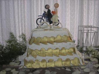 Keywords: ANA BOLOS1.jpg en Cake pt Bolo own JPCP 2010-01-18 Wedding cakes Wedding cake toppers Motorcycles in art Metallic gold food Heart-shaped food