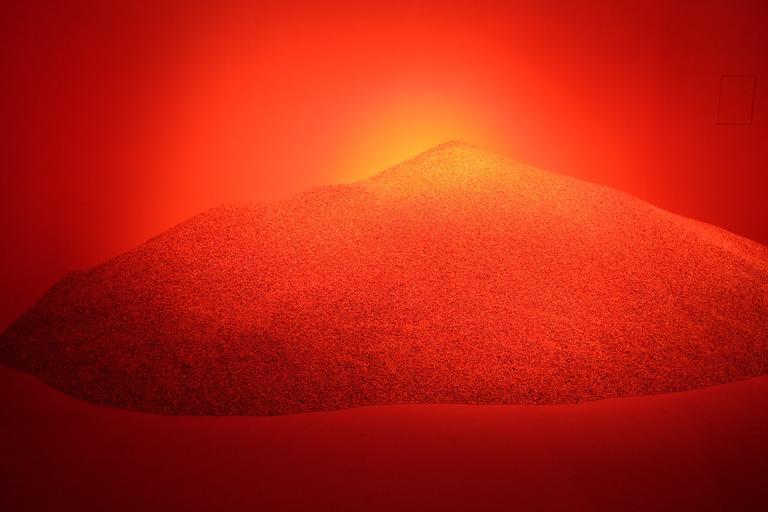 | Keywords: anahata saga seeds kumari nahappan red south east asia singapore biennale 2013 singapore art museum singaporeartmuseum exhibition art installation public domain publicdomain abstract Comprising more than 2,000 kg of saga seeds collected from across Southeast Asia, Anahata is a site-specific installation located in the heart of the Singapore Art Museum. In Hindu cosmology, the word refers to the fourth and 'heart' chakra, meaning "unstruck" or "unhurt". The idea of change is expressed here not as an active force or physical manifestation, but rather as sheer potential energy as embodied in the seed, which holds the life-force of an entire tree in its tiny kernel. The work recalls the history of the site as a former Catholic boys' school, a place where knowledge and learning were planted. Pulsing with the energy of thousands of seeds, Anahata intimates that the greatest power is that of pure possibility. Comprising more than 2,000 kg of saga seeds collected from across Southeast Asia, Anahata is a site-specific installation located in the heart of the Singapore Art Museum. In Hindu cosmology, the word refers to the fourth and 'heart' chakra, meaning "unstruck" or "unhurt". The idea of change is expressed here not as an active force or physical manifestation, but rather as sheer potential energy as embodied in the seed, which holds the life-force of an entire tree in its tiny kernel. The work recalls the history of the site as a former Catholic boys' school, a place where knowledge and learning were planted. Pulsing with the energy of thousands of seeds, Anahata intimates that the greatest power is that of pure possibility. |