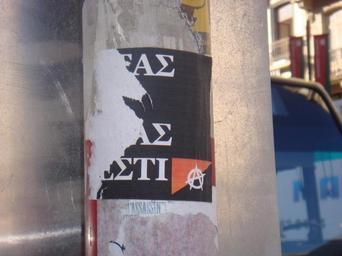 Keywords: AnarchistSticker.JPG en Anarchist sticker in Brussels Own Bescherelle 2008 Anarchism in Greece Greek Anarchist posters