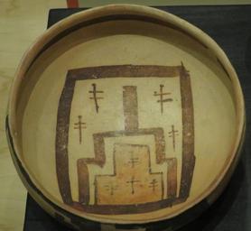 Keywords: Ancestral Hopi, Sityatki polychrome bowl, 1400-1625 CE, Heard Museum.JPG en Ancestral Hopi Sityatki polychrome bowl 1400-1625 CE Heard Museum own Wmpearl photo 2015 Cc-zero Pre-Columbian objects in the Heard Museum Hopi pottery