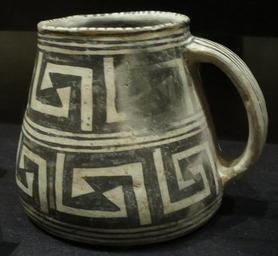 | Keywords: Ancestral Pueblo, Mesa Verde black on white mug, 1200-1300 CE, Heard Museum II.JPG en Ancestral Pueblo Mesa Verde black on white mug 1200-1300 CE Heard Museum own Wmpearl photo 2015 Ancestral Pueblo pottery in the Heard Museum Mesa Verde pottery Cc-zero |
