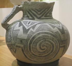 Keywords: Ancestral Pueblo, Tularosa black on white pitcher, 1100-1250 CE, Heard Museum.JPG en Ancestral Pueblo Tularosa black on white pitcher 1100-1250 CE Heard Museum own Wmpearl photo 2015 Ancestral Pueblo pottery in the Heard Museum Cc-zero