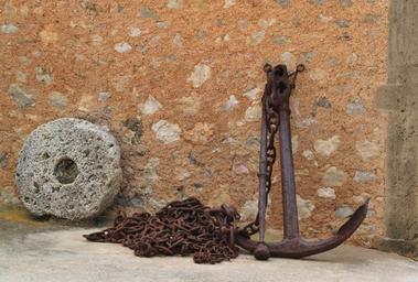 | Keywords: anchor shipping rusty chain chain link iron metal connection chains links of the chain anchor chain mill wheel stainless old rusted members brown stone terracotta south mediterranean south wall still still life mallorca island architecture historically holiday |