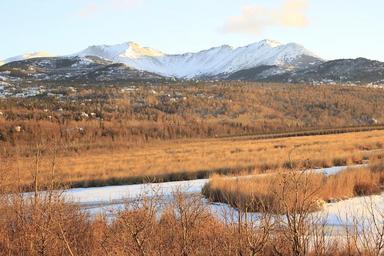Keywords: anchorage alaska winter landscape snow frozen vacation mountain snowcapped grass sky potter's marsh boardwalk view