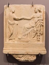 | Keywords: Ancient roman gravestone AMH.jpg en Ancient roman gravestone 2nd century BCE depicting a farewell scene fr Pierre tombale romaine IIème siècle représentant une scène d'adieu Marbre institution Archaeological Museum of Heraklion 2015-02-23 12 40 39 own Jebulon other versions cc-zero Archaeological Museum of Heraklion - Ancient Roman sculptures Ancient Roman funerary steles in Greece 2nd-century reliefs in Greece Sitting women in art Uploaded with UploadWizard QualityImage | ||||