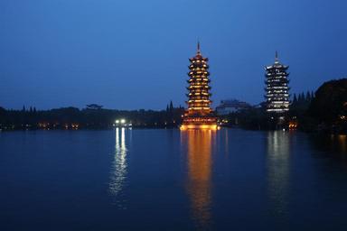 Keywords: ancient tower stupa lake night view guilin