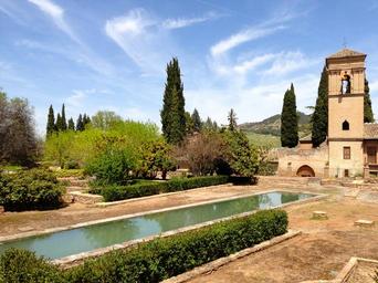 Keywords: andalusia sun clouds spain pond landscape church
