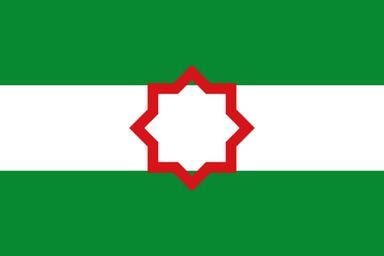 Keywords: Andnac3.svg One version of flag of Andalusian nationalism 2006-12-20 own assumed Murraybuckley Andalusian nationalism Other flags of Andalusia Flags with Rub El Hizb