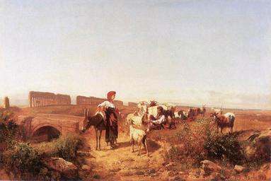 | Keywords: András Markó - Sunlit Italian Landscape with Goats - WGA14099.jpg Artwork Creator András Markó 1889 Oil on canvas size cm 44 65 5 Private collection accession number object history credit line WGA link 14099 http //www wga hu/art/m/marko/son1/marko4 jpg http //www wga hu/html/m/marko/son1/marko4 html PD-old-100 painting landscape Hungarian 1851-1900 András Markó 1880s paintings in private collections 1889 paintings WGA form painting WGA type landscape WGA School Hungarian WGA time period 1851-1900 19th-century paintings in unidentified private collections People with goats in art 19th-century oil on canvas paintings Landscape paintings of Italy Paintings of bridges Feeding animals in art Aqueducts in Rome in art 1880s landscape paintings Paintings of standing females Goatherds in art |