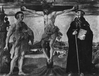 | Keywords: Andrea del Verrocchio - Crocifissione.jpg The Crucifixion with Saints Jerome and Anthony the Abbot Crucifixion avec saint Jérôme et saint Antoine abbé Cristo Crocefisso tra San Gerolamo e Sant'Antonio abate Attributed to the workshop of Andrea del Verrocchio Painting wasstolen on 21 July 1970 Attribué à l'atelier de Andrea del Verrocchio Le tableau a été volé le 21 juillet 1970 Attribuito alla cerchia di Andrea del Verrocchio Dipinto è stato rubato il 21 luglio 1970 Domenico Ghirlandaio artiste et artisan de Jean K Cadogan traduit de l'anglais par Lise-Éliane Pomier Paris Flammarion 2002 ISBN 2-0801-0849-2 century 15 attributed to Other versions <gallery> File Tela rub argiano jpg Other version </gallery> PD-old-100 Paintings by Andrea del Verrocchio Santa Maria a Argiano Paintings of Crucifixion of Christ in Italy Lost paintings 15th-century paintings of the Crucifixion of Christ Taken with Panasonic Lumix DMC-TZ2 Artwork depicting Pietro Perugino |